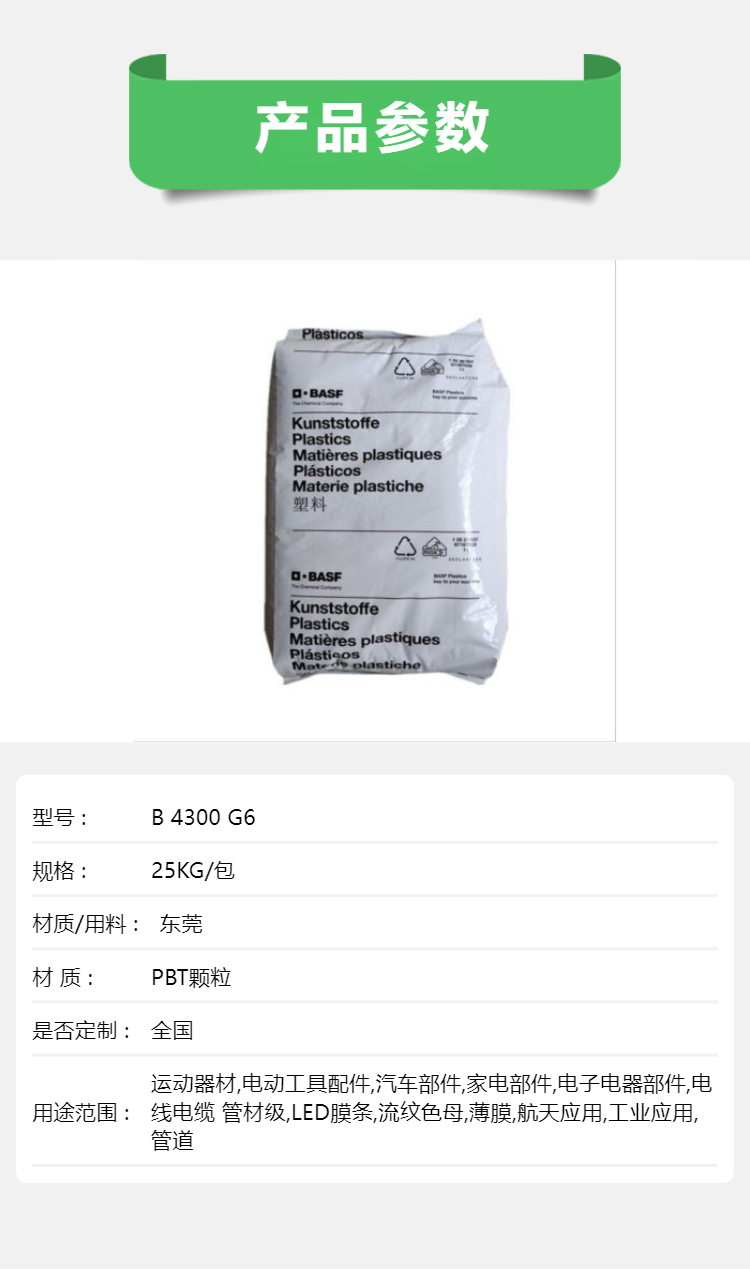 PBT B 4300 G6 德国巴斯夫 半结晶型热塑性聚酯 高耐热性 耐疲劳